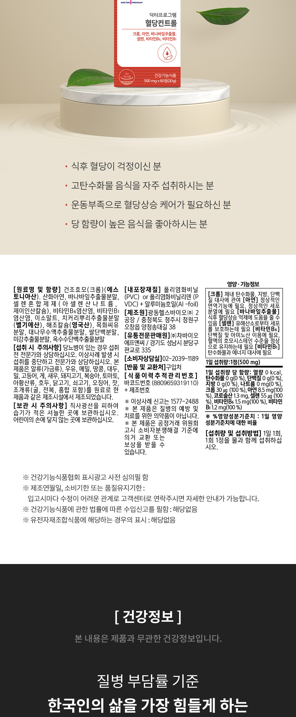[G][차바이오] 닥터프로그램 혈당 컨트롤 60정 X 3박스 (6개월분)